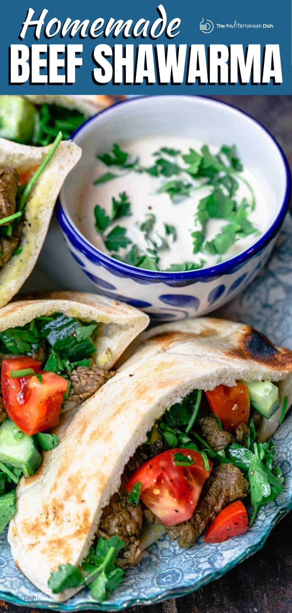 Easy beef shawarma recipe with homemade shawarma seasoning! Serve it up in pita pockets with my tomato and cucumber salad and a good drizzle of tahini sauce.